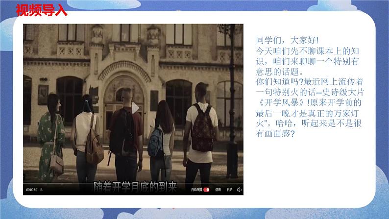 同学们,大家好!今天咱们先不聊课本上的知识,咱们来聊聊一个特别有意思的话题。你们知道吗?最近网上流传着一句特别火的话--史诗级大片《开学风暴》!原来开学前的最后一晚才是真正的万家灯火”。哈哈,听起来是不是很有画面感?