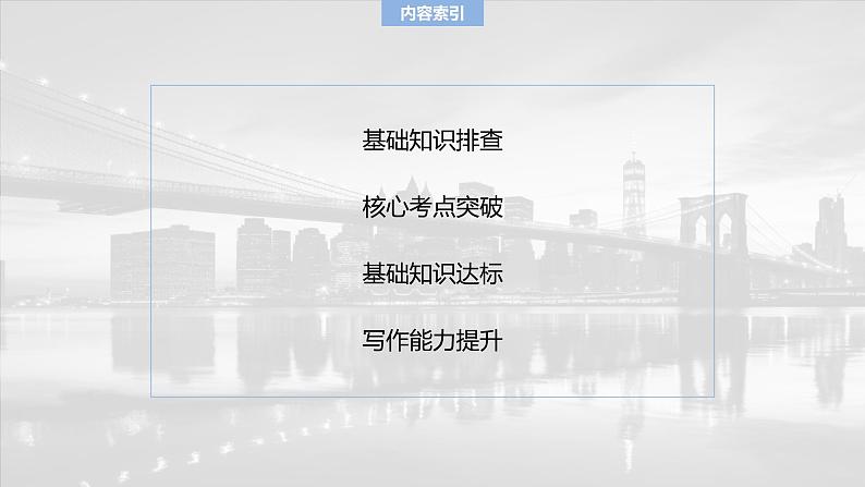 选择性必修第二册 Unit 2 Bridging Cultures-2025年高考英语大一轮复习(课件+讲义+练习): 这是一份选择性必修第二册 Unit 2 Bridging Cultures-2025年高考英语大一轮复习(课件+讲义+练习),文件包含选择性必修第二册Unit2BridgingCulturespptx、选择性必修第二册Unit2BridgingCultures高考题型组合练学生版docx、选择性必修第二册Unit2BridgingCultures教师版docx、选择性必修第二册Unit2BridgingCultures学生版docx、选择性必修第二册Unit2BridgingCultures知识清单学生版docx等5份课件配套教学资源,其中PPT共60页, 欢迎下载使用。