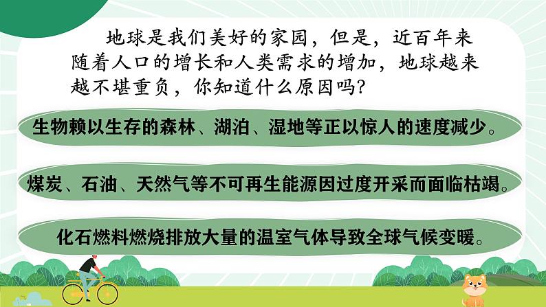 地球是我们美好的家园,但是,近百年来随着人口的增长和人类需求的增加,地球越来越不堪重负,你知道什么原因吗?