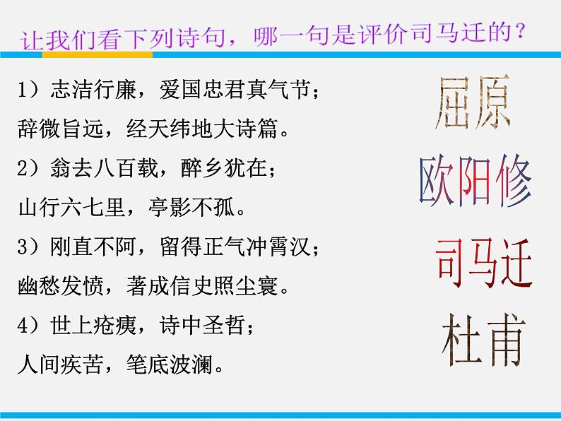 这是一份高中语文人教统编版必修 下册3* 鸿门宴图文ppt课件,共51页。PPT课件主要包含了欧阳修,司马迁,《史记》作者简介,《史记》简介,纪传体史书,《鸿门宴》背景介绍,无伤告密,范增定计,项伯夜访,刘项约婚等内容,欢迎下载使用。
