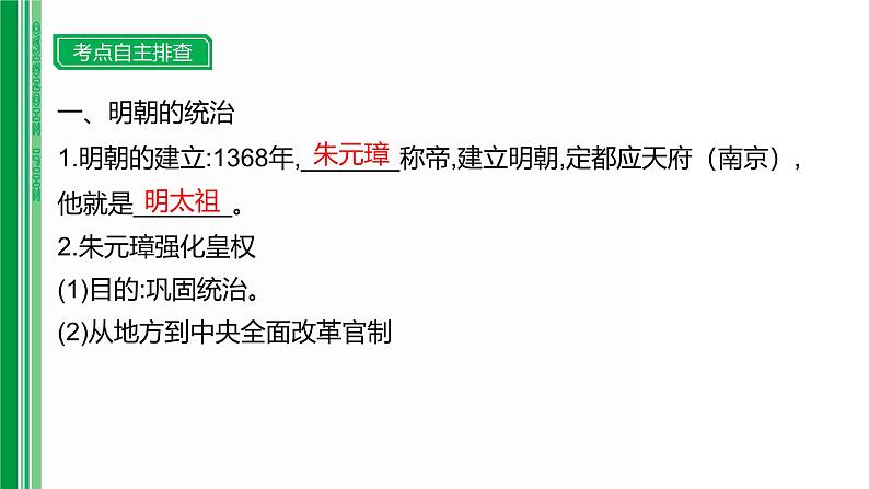 展开2024年中考历史一轮复习课件:中国古代史----7明清时期(至鸦片战争前):统一多民族国家的巩固与发展: 这是一份2024年中考历史一轮复习课件:中国古代史----7明清时期(至鸦片战争前):统一多民族国家的巩固与发展,共53页。PPT课件主要包含了明朝的统治,明朝的建立,朱元璋,丞相制度,锦衣卫,八股取士,青花瓷器,明朝的对外关系,刘家港,红海沿岸等内容,欢迎下载使用。