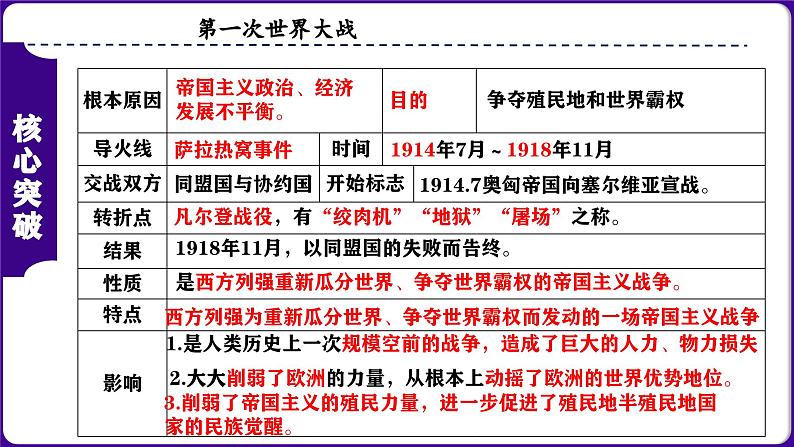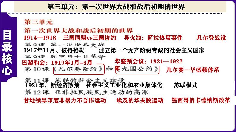 人教版初中历史九下第三单元:第一次世界大战和战后初期的世界-核心素养时代大单元复习 课件