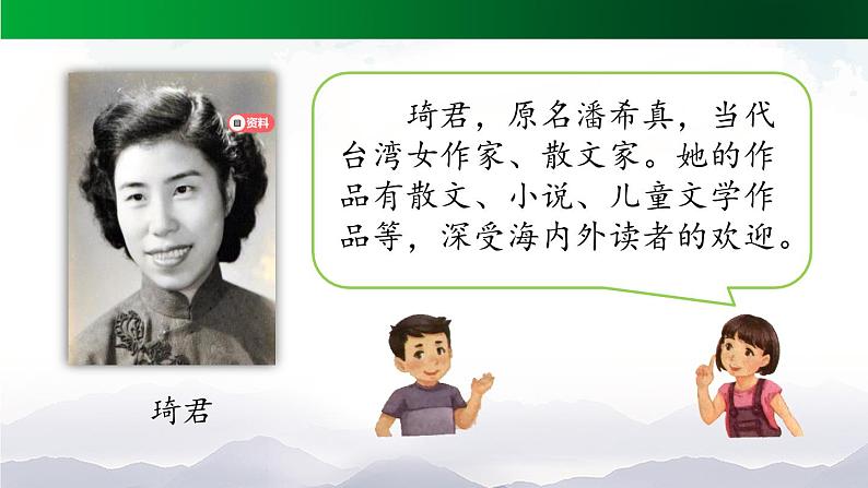 展开琦君,原名潘希真,当代台湾女作家、散文家。她的作品有散文、小说、儿童文学作品等,深受海内外读者的欢迎。