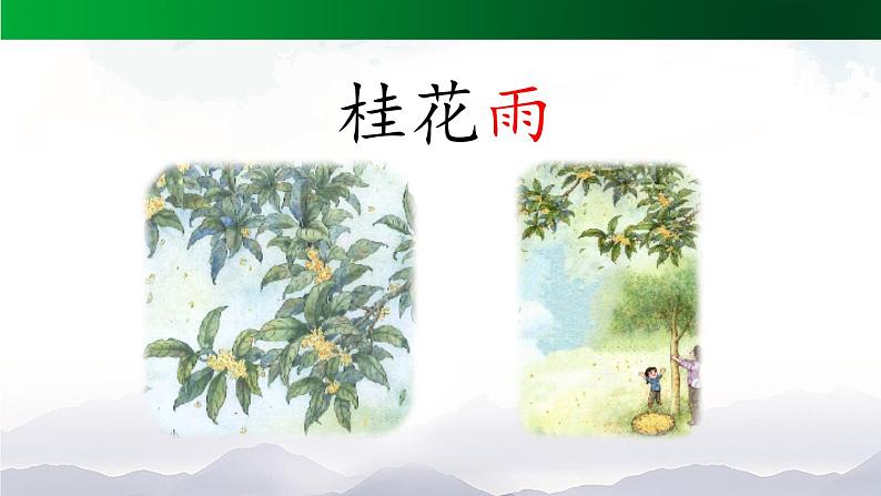 五年级上册桂花雨图片ppt课件: 这是一份五年级上册<a href="/yw/tb_c160773_t3/?tag_id=26" target="_blank">桂花雨图片ppt课件</a>,共15页。PPT课件主要包含了书写指导等内容,欢迎下载使用。