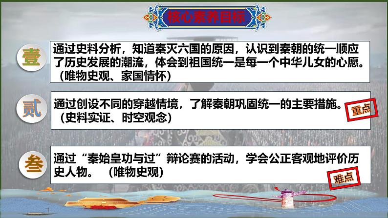 初中历史人教版(2024)七年级上册(2024)第9课 秦统一中国说课ppt课件: 这是一份初中历史人教版(2024)七年级上册(2024)<a href="/ls/tb_c4049670_t3/?tag_id=26" target="_blank">第9课 秦统一中国说课ppt课件</a>,共33页。PPT课件主要包含了第9课秦统一中国,秦灭六国,嬴政秦始皇,公元前221年,咸阳今陕西咸阳,秦朝的建立,建立中央集权制度,皇帝制度,皇位世袭,皇权至上等内容,欢迎下载使用。