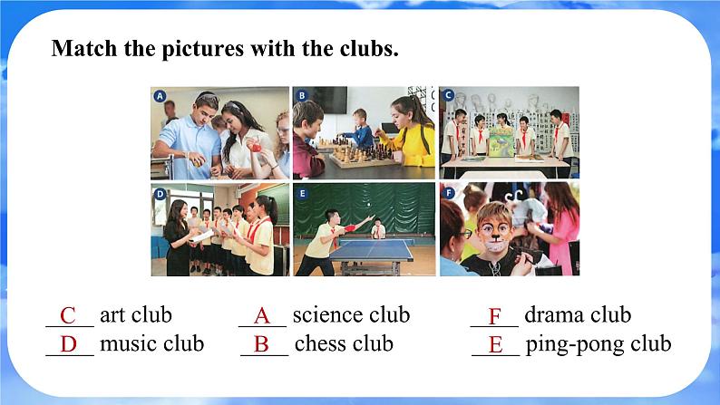 ____ art club ____ science club ____ drama club____ music club ____ chess club ____ ping-png club