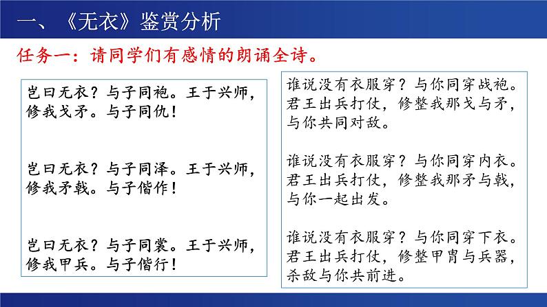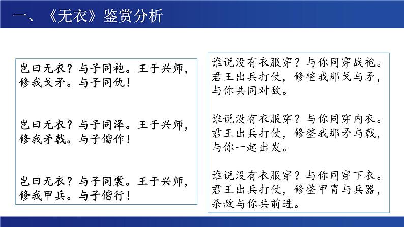 人教统编版选择性必修 上册无衣教学演示ppt课件: