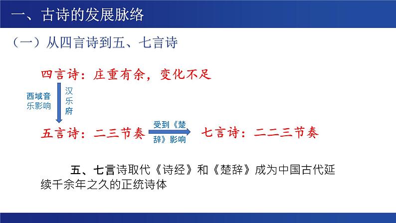 五、七言诗取代《诗经》和《楚辞》成为中国古代延续千余年之久的正统诗体