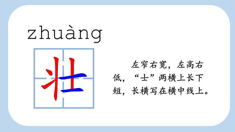 左窄右宽,左高右低,“士”两横上长下短,长横写在横中线上。