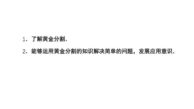 1.了解黄金分割.2.能够运用黄金分割的知识解决简单的问题,发展应用意识.