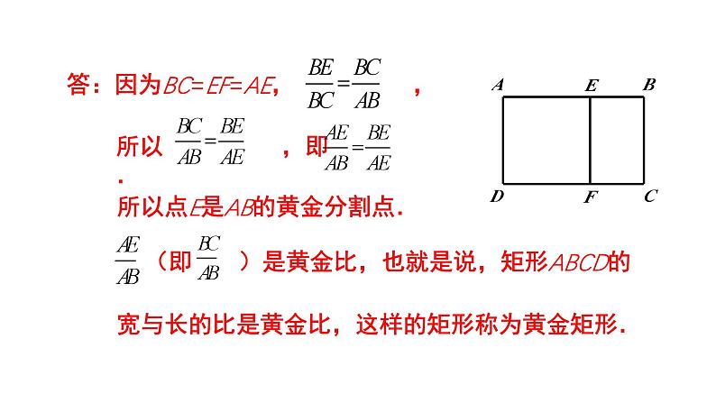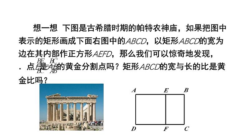 宽与长的比是黄金比,这样的矩形称为黄金矩形.