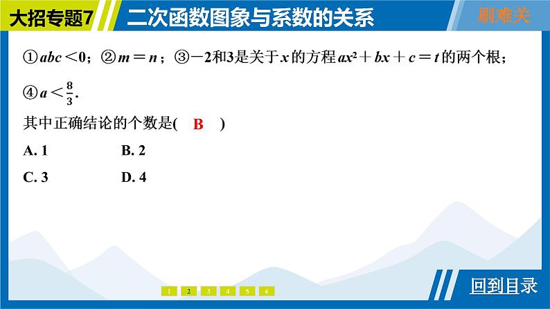 这是一份2025中考复习数学考点专题探究课件:专题7 二次函数图象与系数的关系,共18页。PPT课件主要包含了大招专题7,刷难关,②③④等内容,欢迎下载使用。