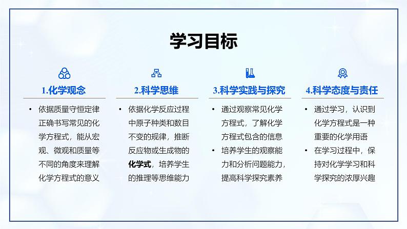 通过学习,认识到化学方程式是一种重要的化学用语在学习过程中,保持对化学学习和科学探究的浓厚兴趣