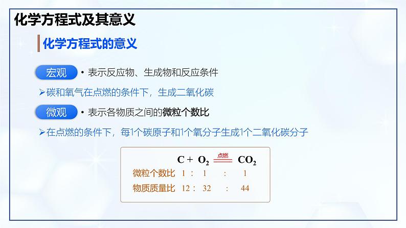 依据质量守恒定律正确书写常见的化学方程式,能从宏观、微观和质量等不同的角度来理解化学方程式的意义