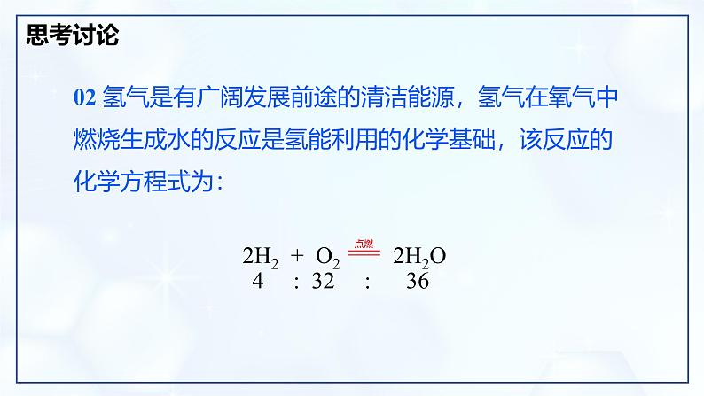 02 氢气是有广阔发展前途的清洁能源,氢气在氧气中燃烧生成水的反应是氢能利用的化学基础,该反应的化学方程式为: