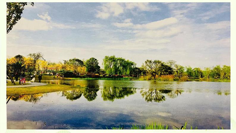 一到池塘边,我就被眼前的景色吸引住了……