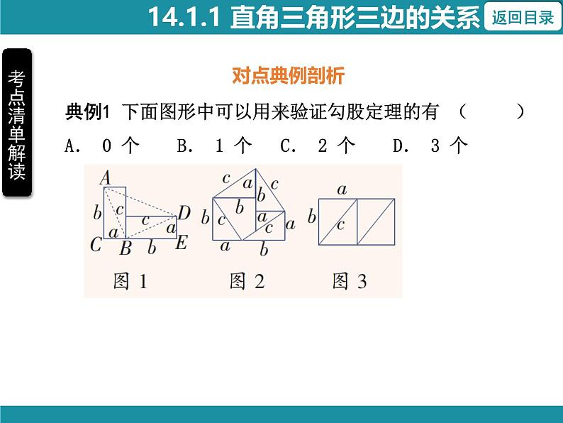 典例1 下面图形中可以用来验证勾股定理的有 ( )A. 0 个 B. 1 个 C. 2 个 D. 3 个