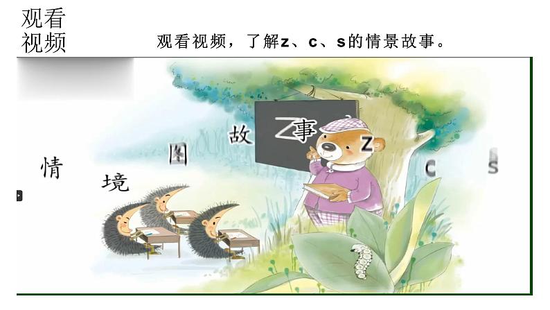 完全正确,今天,我们要继续学习声母,接下来,请大家观看视频,了解z、c、s的情景故事吧!
