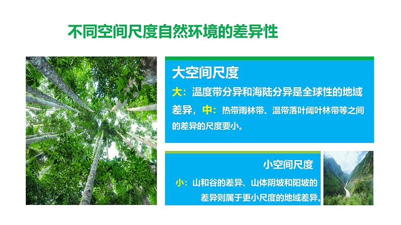 小:山和谷的差异、山体阴坡和阳坡的差异则属于更小尺度的地域差异。