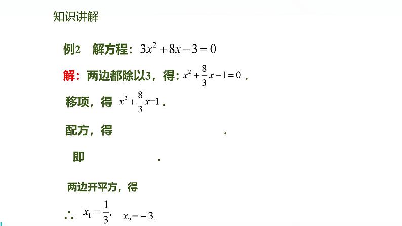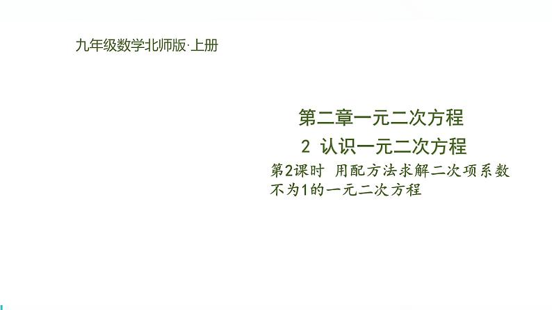 北师版初中九上数学2.2.2用配方法求解二次项系数不为1的一元二次方程【课件】