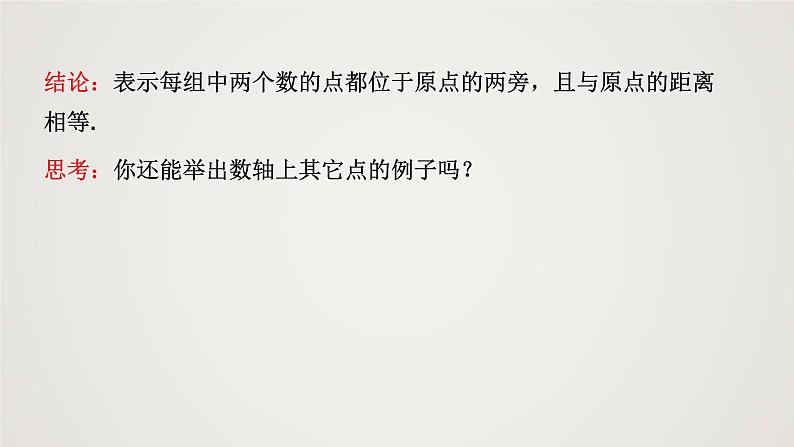 结论:表示每组中两个数的点都位于原点的两旁,且与原点的距离相等.
