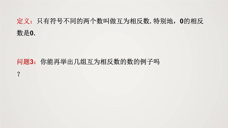 问题3:你能再举出几组互为相反数的数的例子吗?