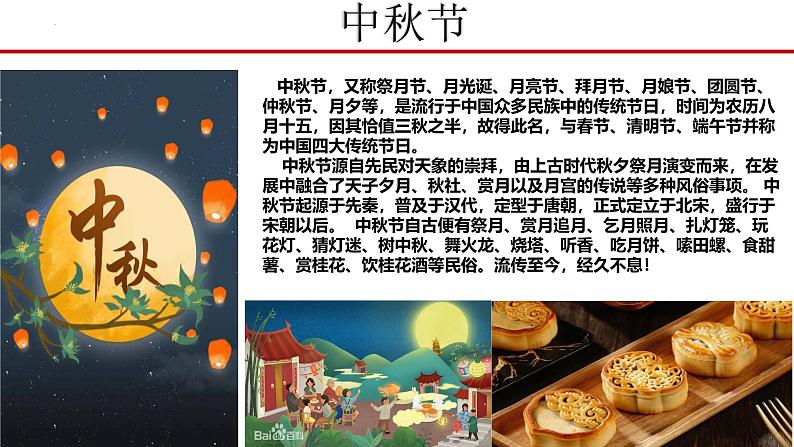 这是一份初中政治 (道德与法治)人教版(2024)九年级上册延续文化血脉教学演示ppt课件,共39页。PPT课件主要包含了1延续文化血脉,重点问题,第一目中华文化根,中秋节,中华文化的形成等内容,欢迎下载使用。