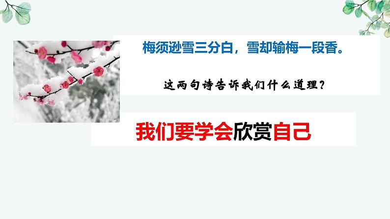 梅须逊雪三分白,雪却输梅一段香。这两句诗告诉我们什么道理?