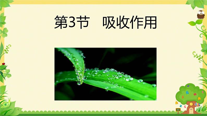 初中北师大版(2024)第3节 吸收作用优质课件ppt: 这是一份初中北师大版(2024)<a href="/sw/tb_c4049152_t3/?tag_id=26" target="_blank">第3节 吸收作用优质课件ppt</a>,共31页。PPT课件主要包含了内容一,观察根毛,内容二,小资料,内容三,思考与练习等内容,欢迎下载使用。