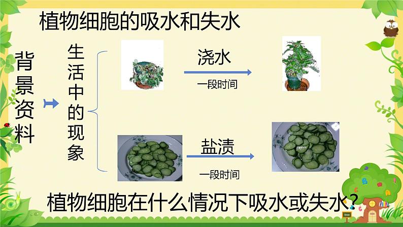 北师大版(2024)七年级上册(2024)第3节 吸收作用集体备课ppt课件: 这是一份北师大版(2024)七年级上册(2024)<a href="/sw/tb_c4049152_t3/?tag_id=26" target="_blank">第3节 吸收作用集体备课ppt课件</a>,共18页。PPT课件主要包含了清水中吸水,盐水中失水,细胞吸水,吸水的原理,细胞失水,失水的原理等内容,欢迎下载使用。
