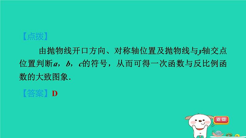 由抛物线开口方向、对称轴位置及抛物线与y轴交点位置判断a,b,c的符号,从而可得一次函数与反比例函数的大致图象.