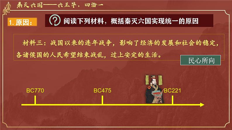 材料三:战国以来的连年战争,影响了经济的发展和社会的稳定,各诸侯国的人民希望结束战乱,过上安定的生活。
