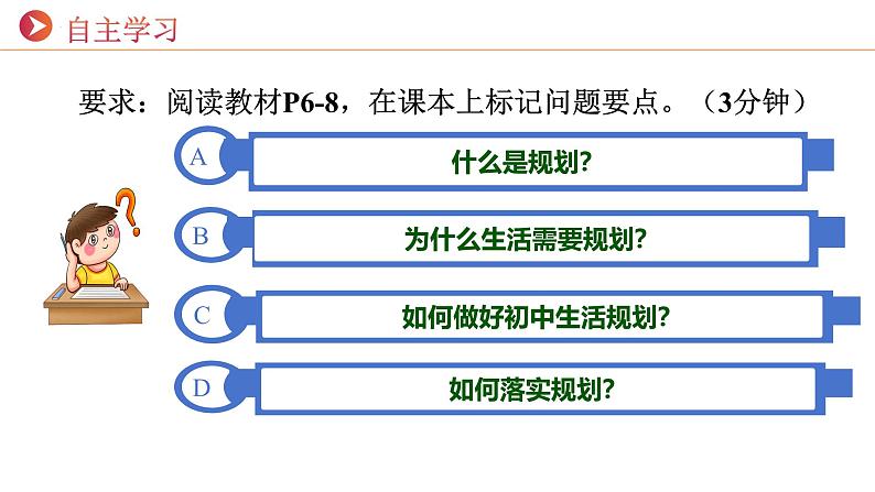 这是一份初中政治 (道德与法治)人教版(2024)七年级上册(2024)规划初中生活多媒体教学ppt课件,共26页。PPT课件主要包含了自主预习,1什么是规划,笔记区等内容,欢迎下载使用。