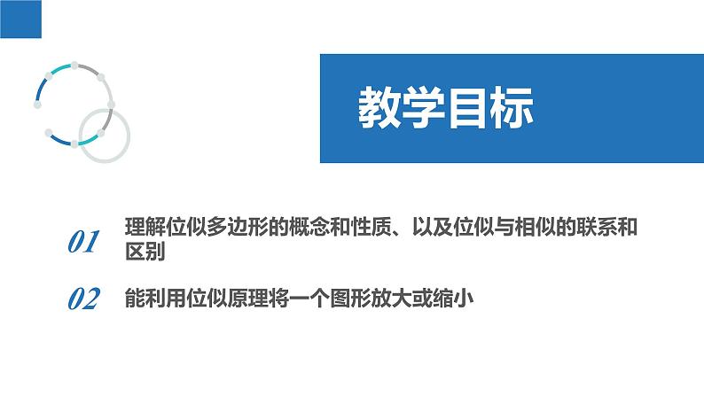 这是一份数学九年级下册6.6 图形的位似多媒体教学课件ppt,共27页。PPT课件主要包含了教学目标,位似多边形,位似多边形的性质,知识精讲,分析注意两解等内容,欢迎下载使用。