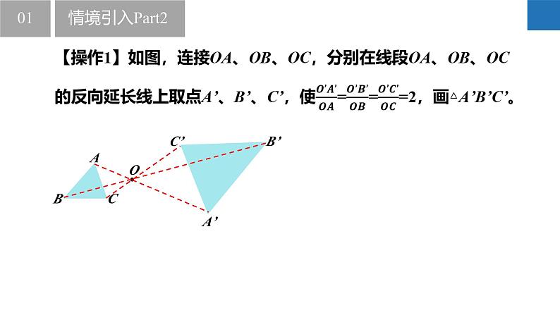 【总结】若两个多边形位似,则这两个多边形任意一组对应顶点到位似中心的距离之比都等于相似比。