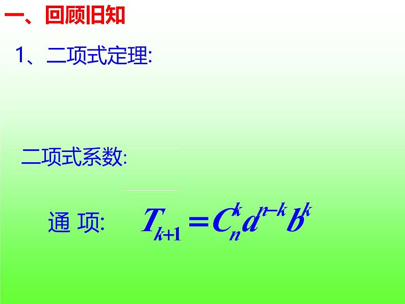 (3).奇数项的二项式系数和与偶数项的 二项式系数和;
