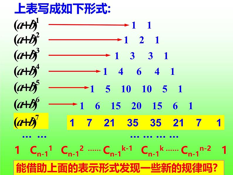 1.计算(a+b)n展开式的二项式系数并填入下表: