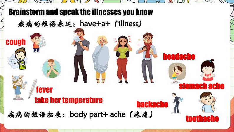 疾病的短语拓展:bdy part+ ache(疼痛)