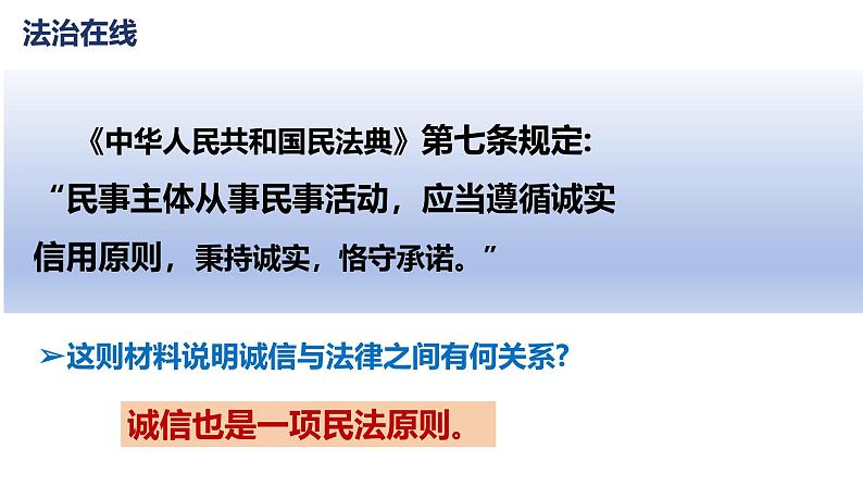 ➢这则材料说明诚信与法律之间有何关系?