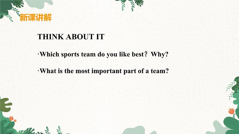 THINK ABOUT IT·Which sprts team d yu like best?Why?·What is the mst imprtant part f a team?