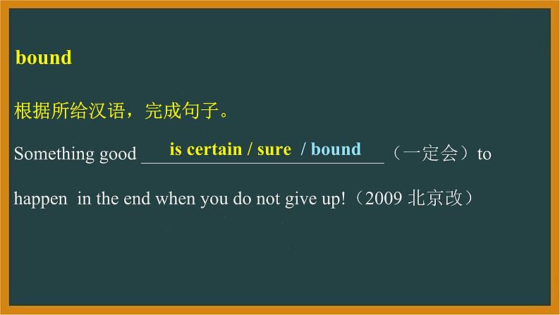 根据所给汉语,完成句子。Smething gd __________________________(一定会)t happen in the end when yu d nt give up!(2009 北京改)