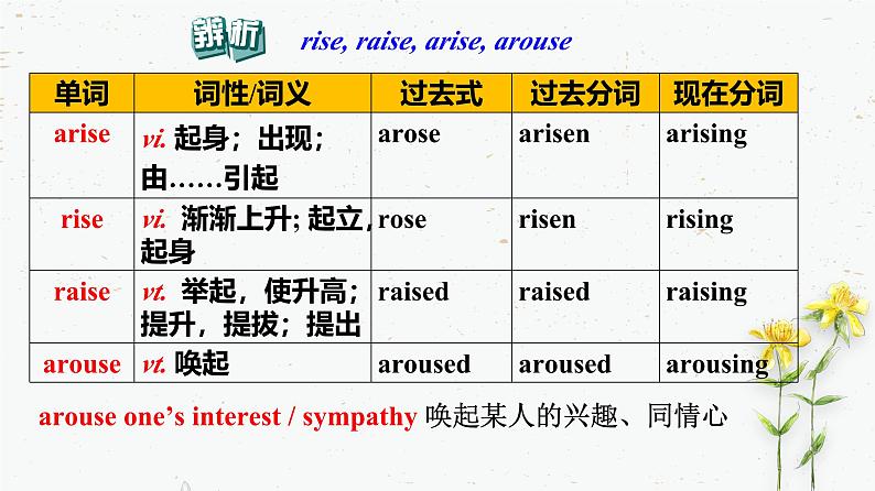 用arise, aruse, rise, raise的适当形式填空1) The river has ________ by several meters.2) He ________ his eyes frm his wrk.3) Smke ________ frm the chimney.4) Her behavir ________ the suspicins f the plice.