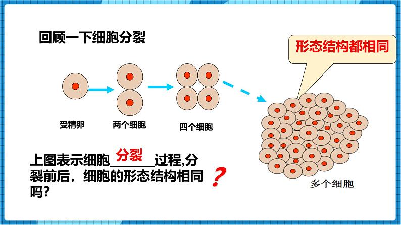 通过本节学习,你将知道:多细胞生物体内多种多样的细胞是怎样形成的?人体有哪些组织?人体结构层次是怎样的?