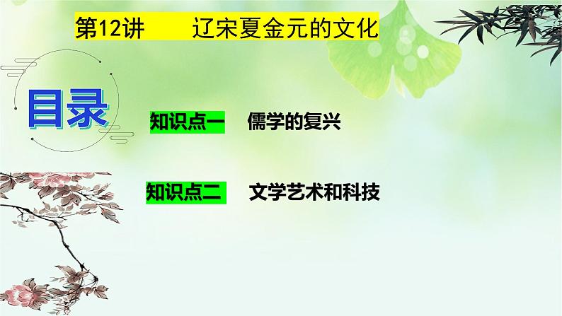 这是一份第12课 辽宋夏金元的文化 课件--2024届高三统编版(2019)必修中外历史纲要上一轮复习,共33页。