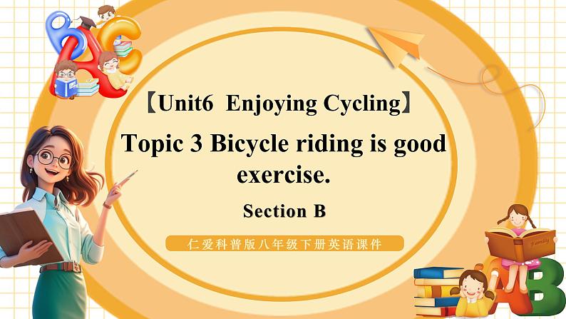 这是一份仁爱科普版(2024)八年级下册Topic 3 Bicycle riding is good exercise.教学ppt课件,文件包含Unit6Topic3SectionBpptx、Unit6Topic3SectionB教学设计docx、Unit6Topic3大单元整体教学设计仁爱版八年级下docx、p45-1amp3、p46-3amp3等5份课件配套教学资源,其中PPT共25页, 欢迎下载使用。