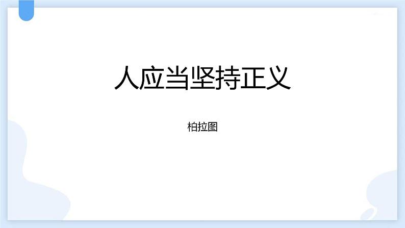 展开这是一份高中语文人教统编版选择性必修 中册5 *人应当坚持正义授课课件ppt,共27页。PPT课件主要包含了作者介绍,了解苏格拉底,写作背景,学习任务,人应当坚持正义,人应该坚持正义,思考探究等内容,欢迎下载使用。