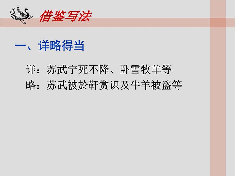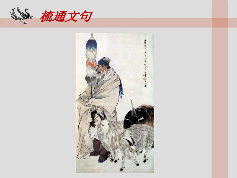 详:苏武宁死不降、卧雪牧羊等略:苏武被於靬赏识及牛羊被盗等