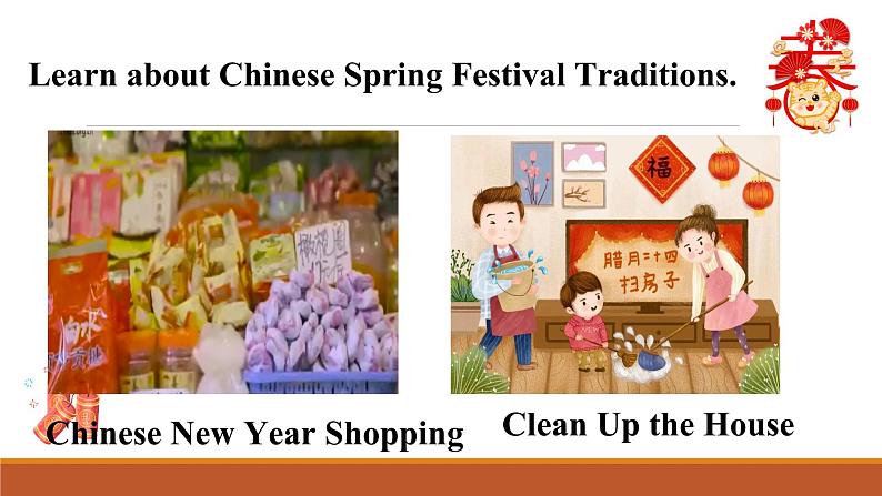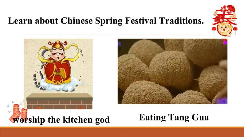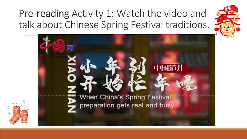 Pre-reading Activity 1: Watch the vide and talk abut Chinese Spring Festival traditins.