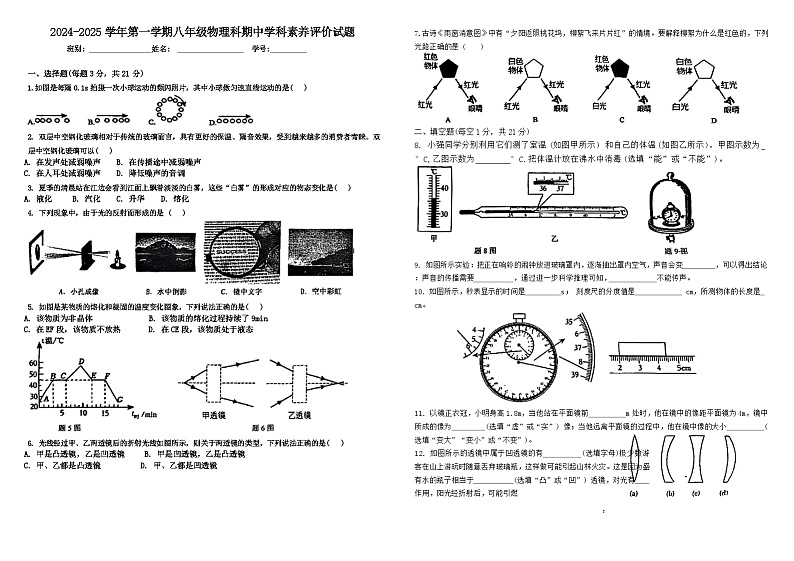 这是一份广东省江门市怡福中学2024-2025学年八年级上学期第一次月考物理试题,共8页。