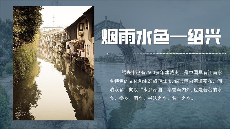 绍兴市已有2500多年建城史,是中国具有江南水乡特色的文化和生态旅游城市,绍兴境内河道密布,湖泊众多,向以“水乡泽国”享誉海内外,也是著名的水乡、桥乡、酒乡、书法之乡、名士之乡。